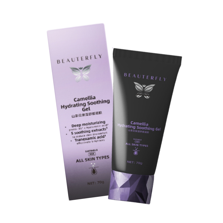 Beauterfly’s camellia hydrating soothing gel offers deep hydrating soothing gel offers deep hydration and soothing relief.