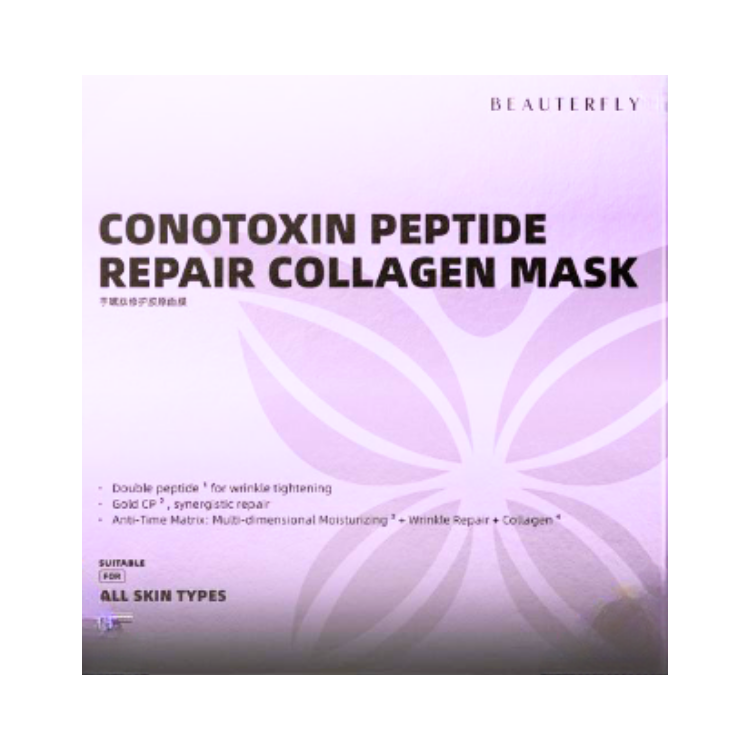 Conotoxin Peptide Repair Collagen Mask has a dual peptide and collagen properties for wrinkle reduction and skin firming.